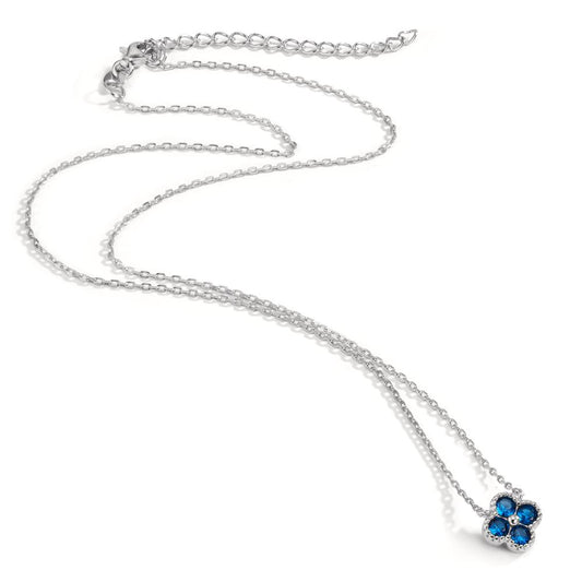 Collier Silber Zirkonia saphirblau, 4 Steine rhodiniert Blume 40-45 cm verstellbar