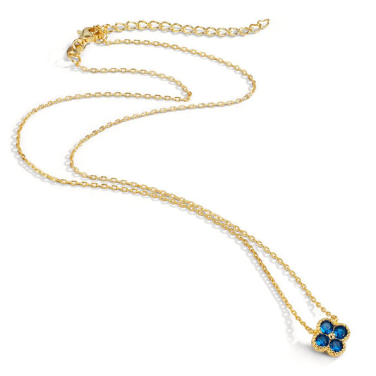 Collier Silber Zirkonia saphirblau, 4 Steine gelb vergoldet Blume 40-45 cm verstellbar