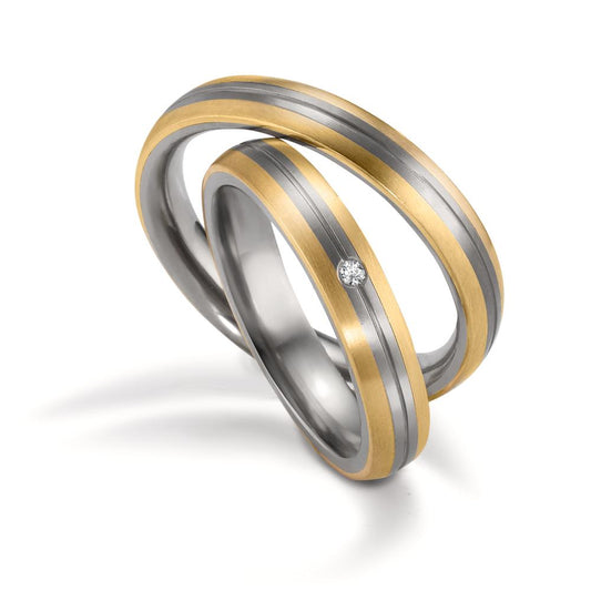Partnerring Zirkonium, 750/18 K Gelbgold Diamanten 0.02 ct, w-si