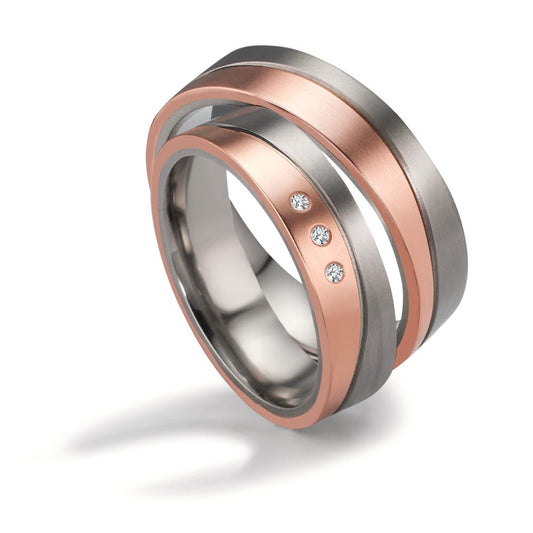 Partnerring Edelstahl, Titan Diamant 0.045 ct, 3 Steine, w-si