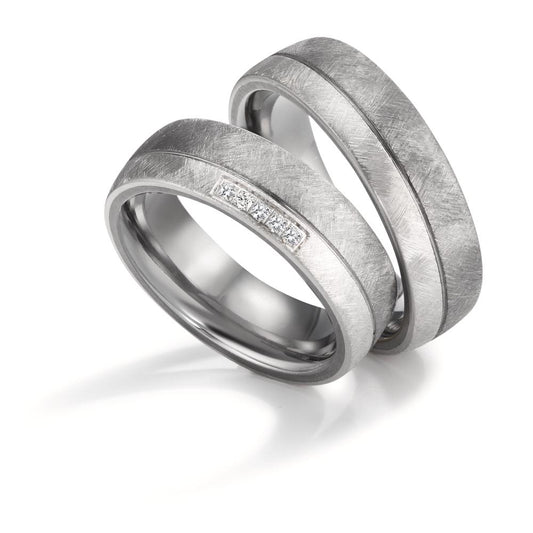 Partnerring Zirkonium, Titan Diamant 0.055 ct, 5 Steine, w-si
