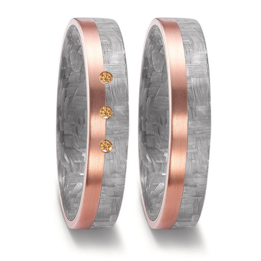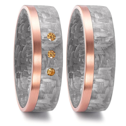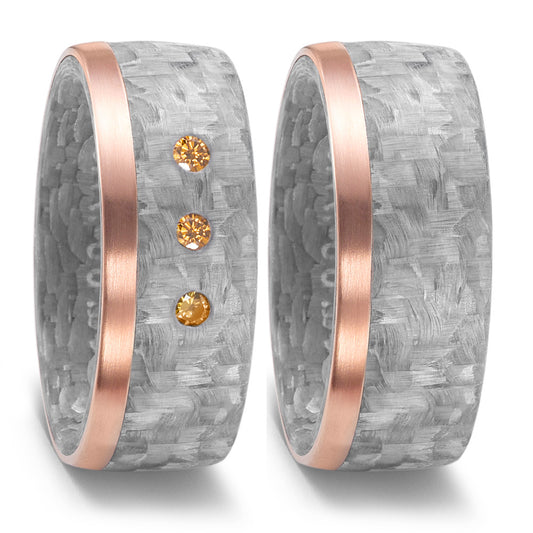Partnerring Carbon, 750/18 K Rotgold Diamant cognac, 0.06 ct, 3 Steine