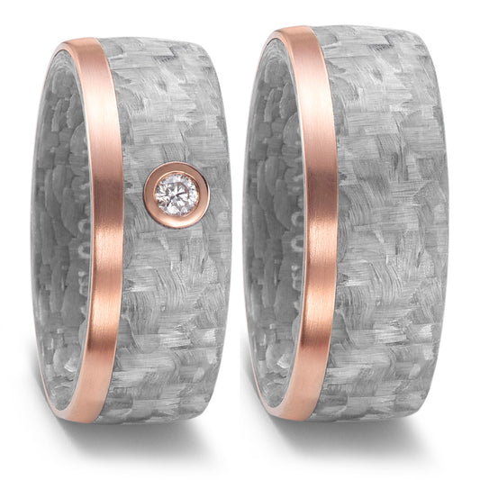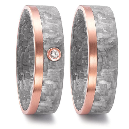 Partnerring Carbon, 750/18 K Rotgold Diamant 0.01 ct, w-si