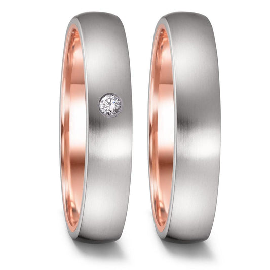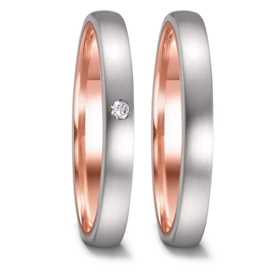 Partnerring Edelstahl, 585/14 K Rotgold Diamant 0.03 ct, w-si