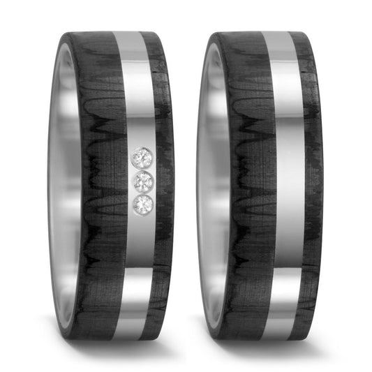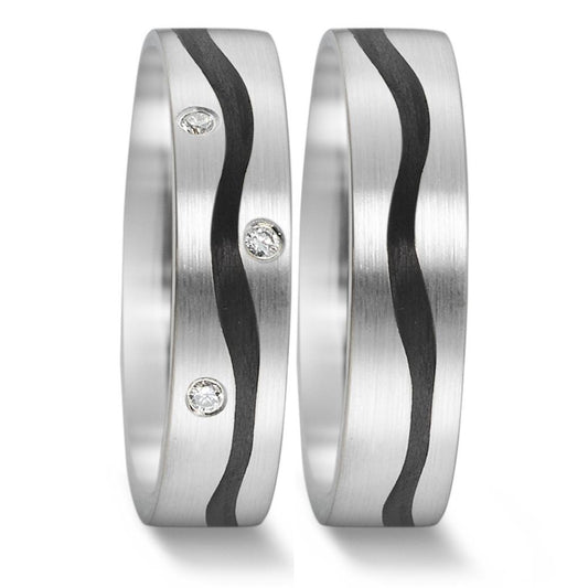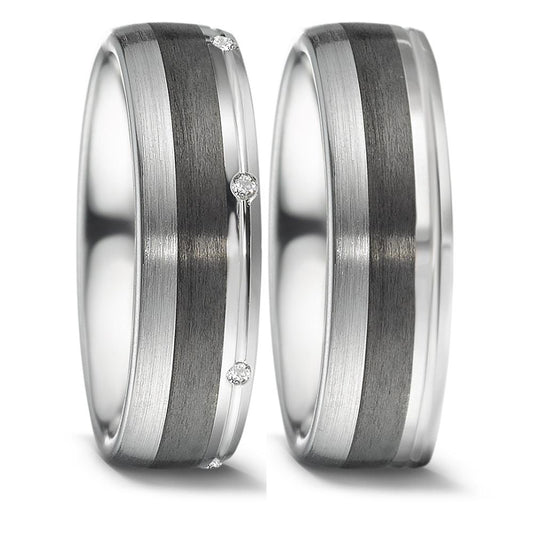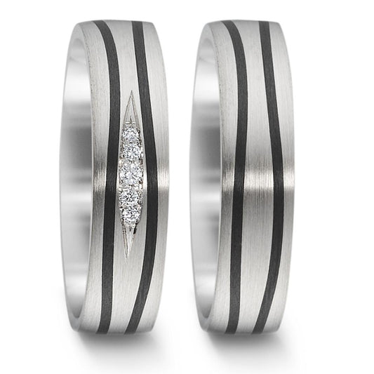 Partnerring 585/14 K Weissgold, Carbon Diamant 0.015 ct, tw-si