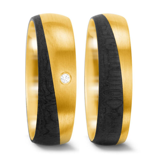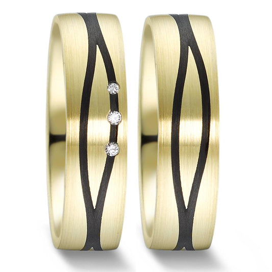 Partnerring 585/14 K Gelbgold, Carbon Diamant 0.015 ct, tw-si