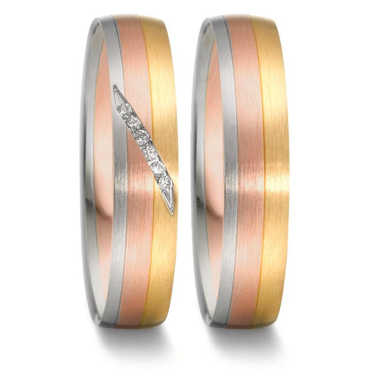Partnerring 750/18 K Gelbgold, 750/18 K Rotgold, 750/18 K Weissgold Diamant 0.03 ct, 6 Steine, w-si