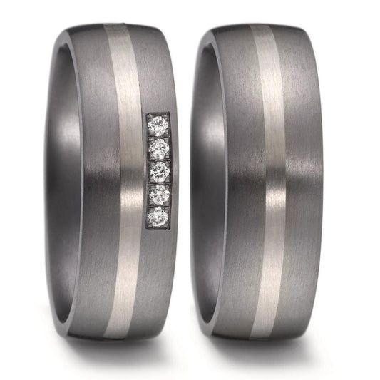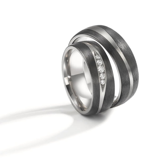 Partnerring Titan, Carbon Diamant 0.09 ct, 5 Steine, w-si