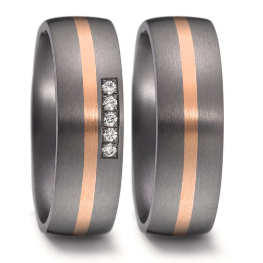 Partnerring 999 Tantal, 750/18 K Rotgold Diamant 0.10 ct, w-si
