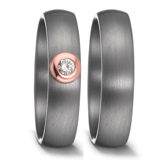 Partnerring 999 Tantal, 750/18 K Rotgold Diamant 0.01 ct, w-si