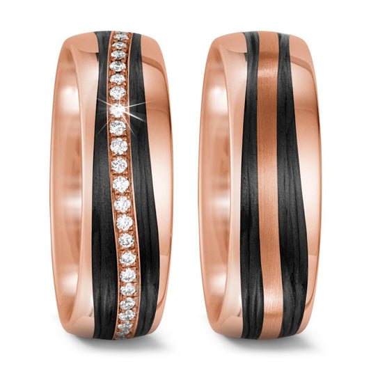 Partnerring 750/18 K Rosegold, Carbon Diamant 0.03 ct, w-si