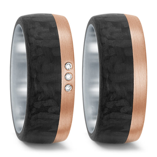 Partnerring Edelstahl, 750/18 K Rosegold, Carbon Diamant 0.03 ct, 3 Steine, w-si