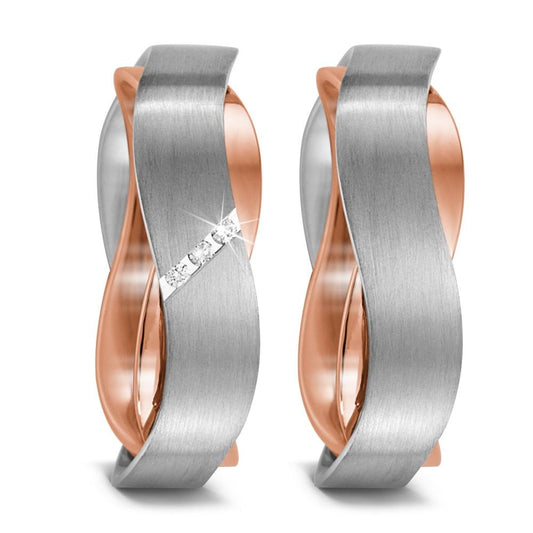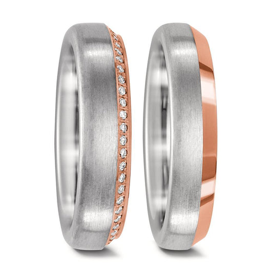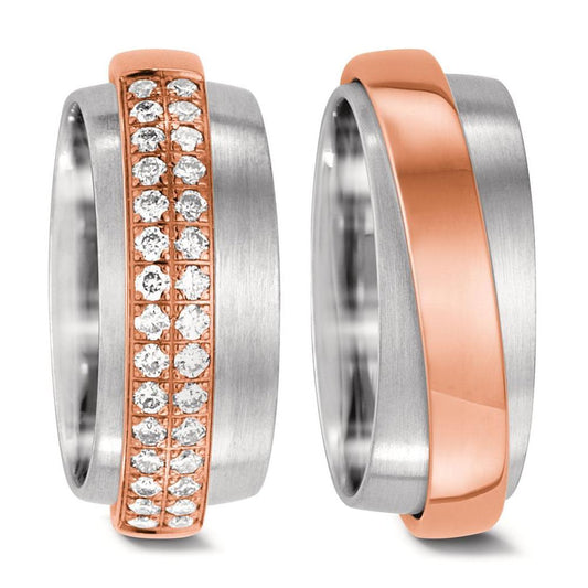 Partnerring Edelstahl, 585/14 K Rotgold Diamant 0.01 ct, w-pi1