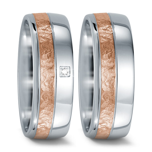 Partnerring 750/18 K Weissgold, 750/18 K Rotgold Diamant 0.03 ct, 3 Steine, w-si