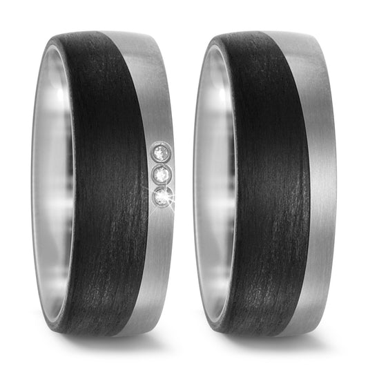 Partnerring Titan, Carbon Diamant 0.03 ct, 3 Steine, w-si