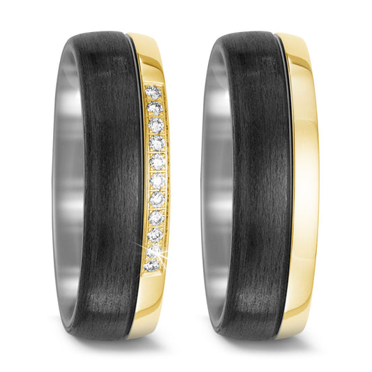 Partnerring Titan, Carbon, 750/18 K Gelbgold Diamant 0.11 ct, 11 Steine, w-si