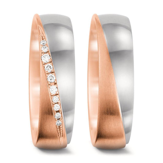 Partnerring 750/18 K Rosegold, 750/18 K Weissgold Diamant weiss, 0.078 ct, 10 Steine, tw-vsi
