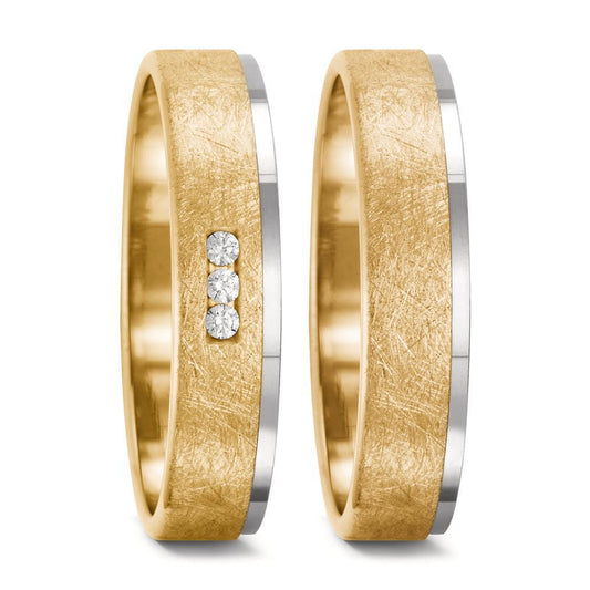 Partnerring 750/18 K Gelbgold Diamant 0.015 ct, 3 Steine, tw-vsi