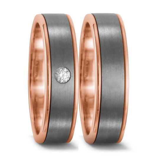 Partnerring Titan, 750/18 K Rotgold Diamant 0.02 ct, w-si