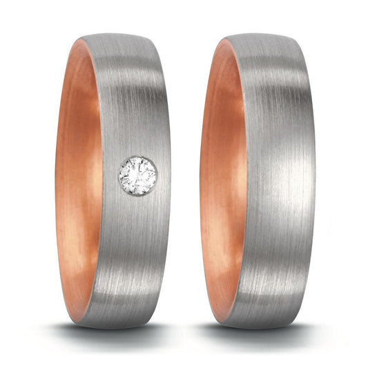 Partnerring Titan, 750/18 K Rotgold Diamant 0.05 ct, w-si