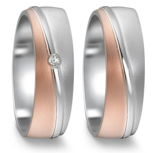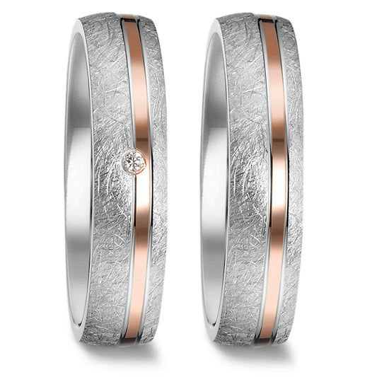 Partnerring Edelstahl Zirkonia rosé IP beschichtet