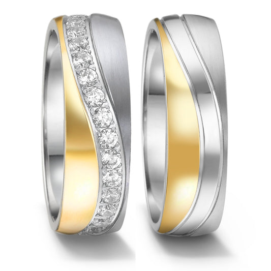 Partnerring Edelstahl Zirkonia bicolor IP beschichtet