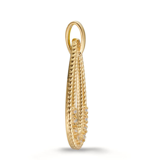 Pendentif Or jaune 9K Zircone 5 Pierres perle d'eau douce blanc, 7 mm Ø16 mm