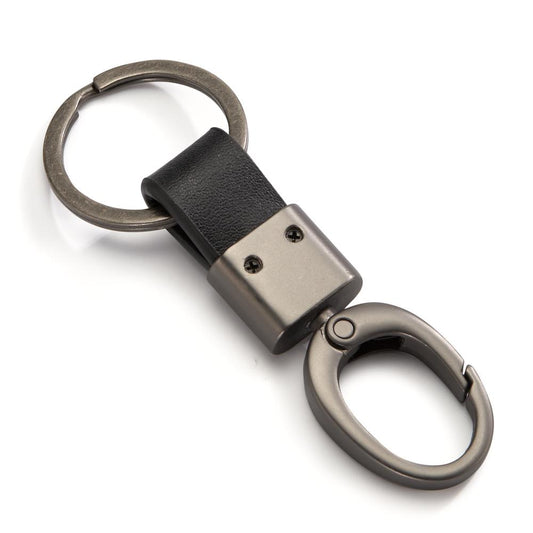Porte-clés Acier inoxydable, Cuir, Caoutchouc Zircone noir PVD 11 cm Ø30 mm