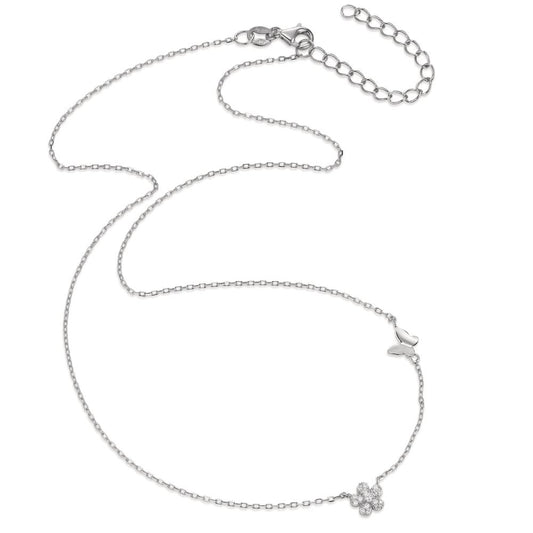Collier Argent Zircone Rhodié Fleur 40-45 cm