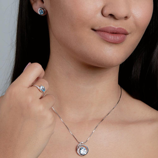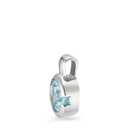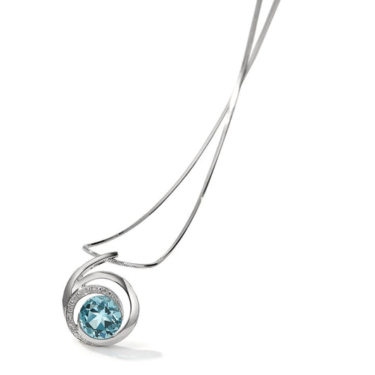 Pendentif Or blanc 18K Topaze bleu, Diamant 0.035 ct, 6 Pierres, brillant, w-si