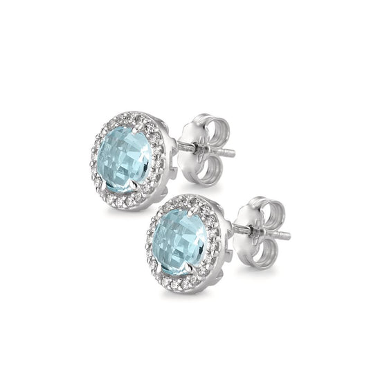 Clous d'oreilles Or blanc 18K Topaze bleu, 2 Pierres, Diamant blanc, 0.03 ct, 6 Pierres, brillant, w-si Ø11 mm