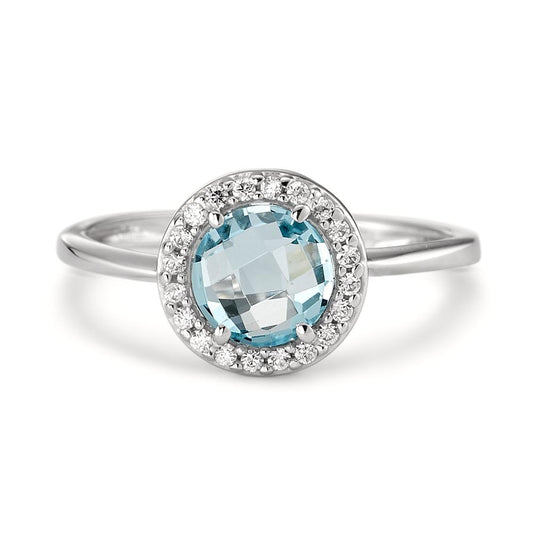 Bague Or blanc 18K Topaze bleu Ø9 mm