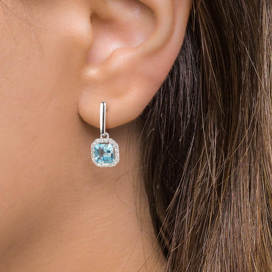 Pendant d'oreilles Or blanc 18K Topaze bleu, 2 Pierres