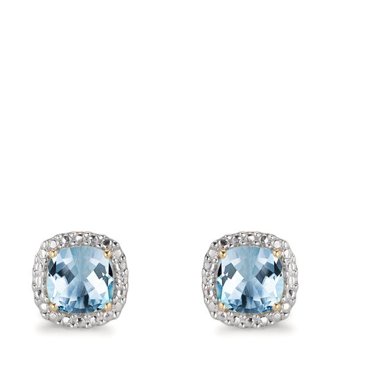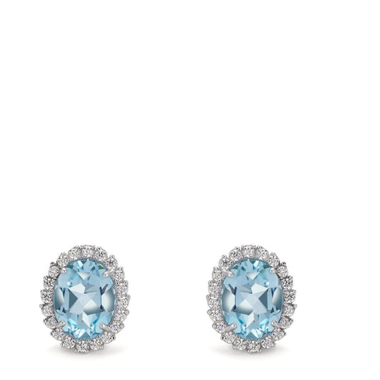 Clous d'oreilles Or blanc 18K Topaze bleu, 2 Pierres