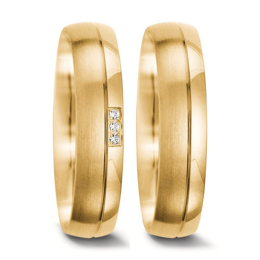 Alliance Or jaune 18K Diamant 0.015 ct, 3 Pierres, tw-vsi