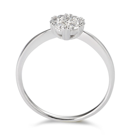 Bague solitaire Or blanc 9K Zircone blanc, 7 Pierres Ø6.8 mm