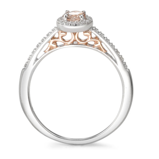 Bague solitaire Or blanc 9K Diamant 0.10 ct, w-pi3, Morganite champagne