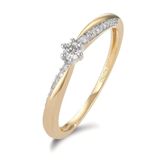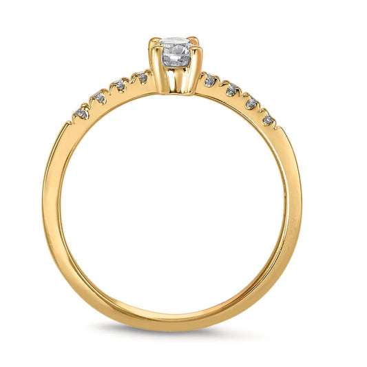 Bague solitaire Or jaune 18K Diamant blanc, 0.20 ct, 18 Pierres, brillant, w-si, Diamant blanc, 0.30 ct, brillant, w-si