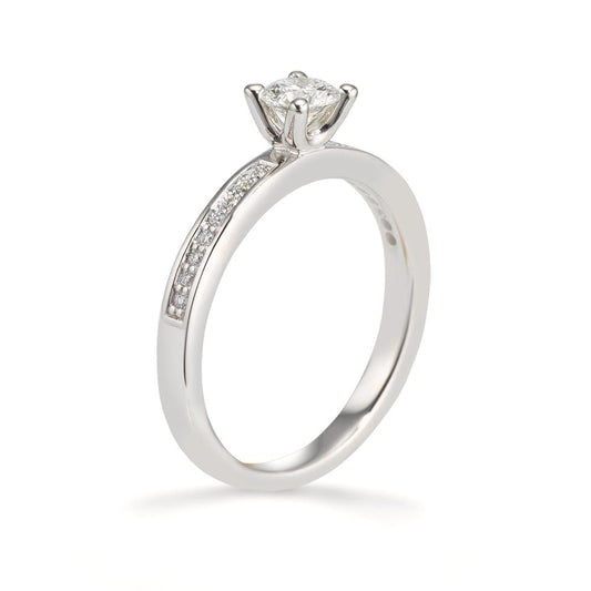 Bague solitaire Or blanc 18K Diamant blanc, 0.22 ct, brillant, w-si, Diamant 0.08 ct, 16 Pierres, brillant, w-si