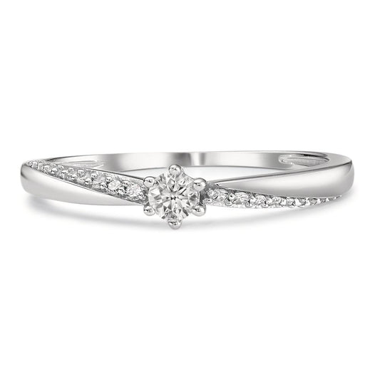 Bague solitaire Or blanc 18K Diamant 0.16 ct, 21 Pierres, w-si