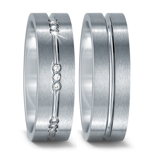 Alliance Acier inoxydable, Céramique Diamant 0.024 ct, 3 Pierres, tw-si