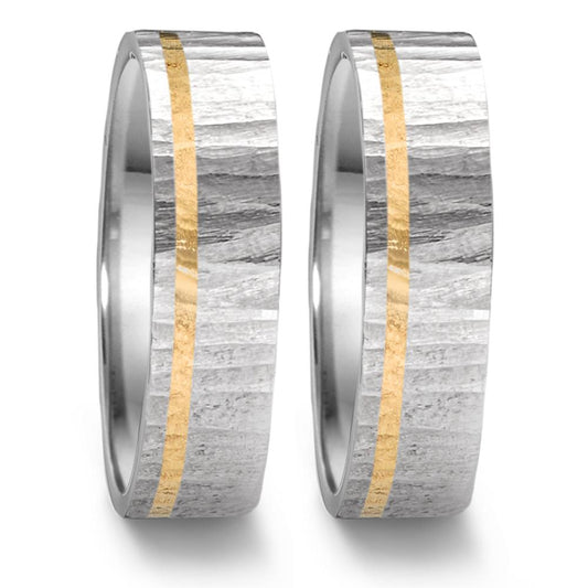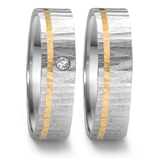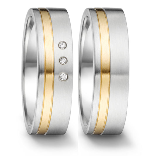 Alliance Acier inoxydable, Or jaune 18K Diamant 0.024 ct, 3 Pierres, tw-si