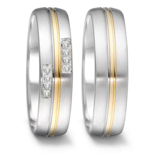 Alliance Acier inoxydable, Or jaune 18K Diamant 0.064 ct, 8 Pierres, tw-si