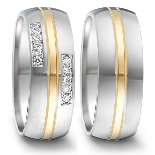 Alliance Acier inoxydable, Or jaune 18K Diamant 0.12 ct, 10 Pierres, tw-si