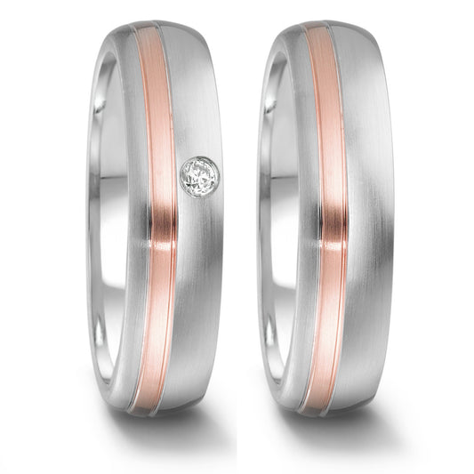 Alliance Acier inoxydable, Or rouge 18K Diamant 0.04 ct, w-si