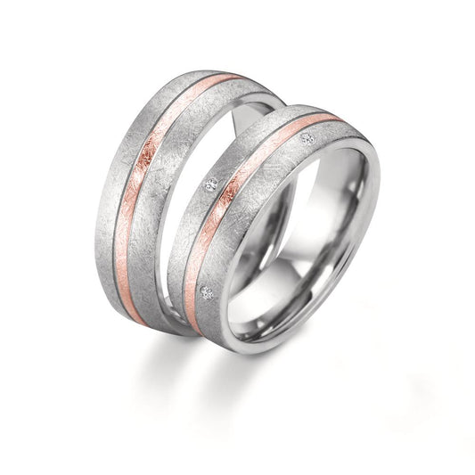 Alliance Acier inoxydable, Or rose 18K Diamant 0.064 ct, 8 Pierres, tw-si