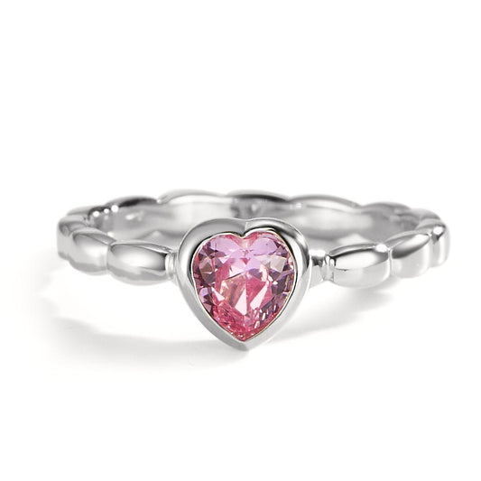 Bague Argent [synth. Rubin] rose Rhodié Coeur