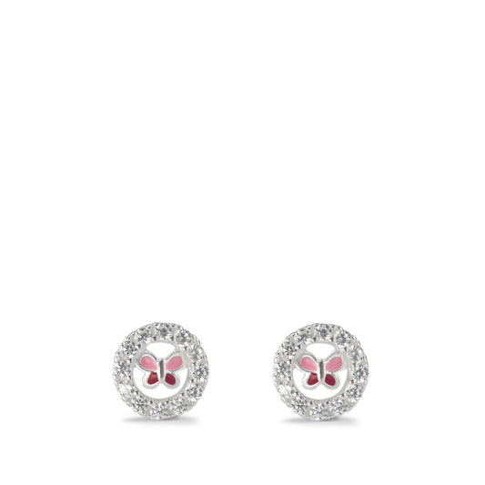 Clous d'oreilles Argent Zircone Laqué Papillon Ø7 mm