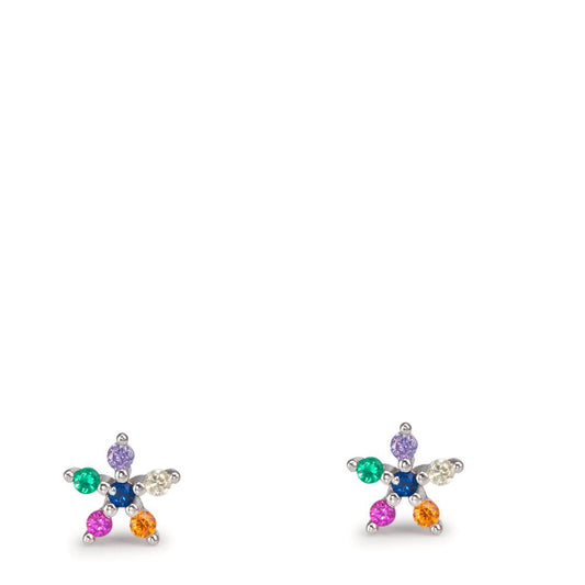 Clous d'oreilles Argent Zircone Rhodié Fleur Ø5.5 mm