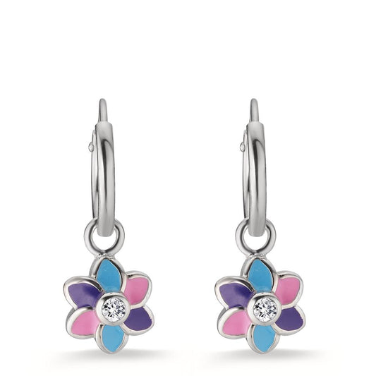 Créoles avec pendentif Argent Zircone blanc, 2 Pierres Rhodié Fleur Ø7 mm